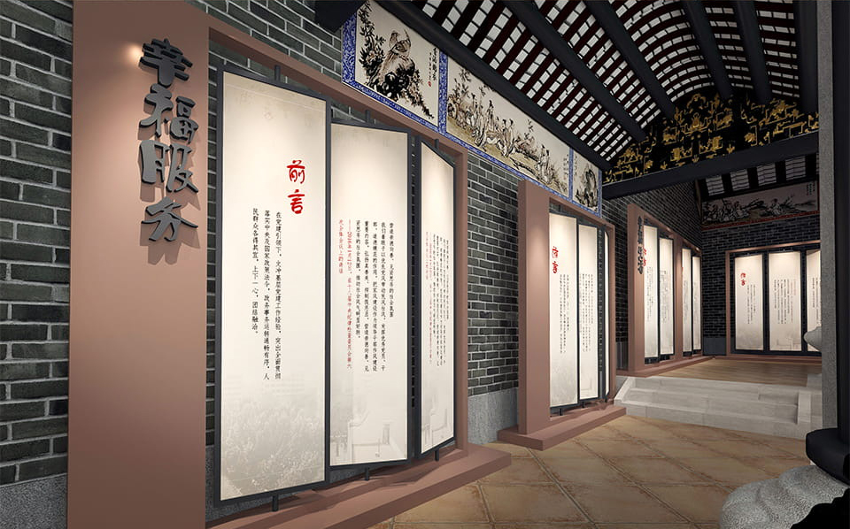 項(xiàng)目簡介:幸福之源黨風(fēng)家風(fēng)館從黨風(fēng)家風(fēng)促黨建出發(fā),活用古祠堂及周邊公共空間,融合紅色文化水舞秀表演和新時代文明實(shí)踐站功能,提煉政通、文昌、城美、業(yè)興、民樂五大主題,全方位呈現(xiàn)文沖人民群眾幸福生活場景。