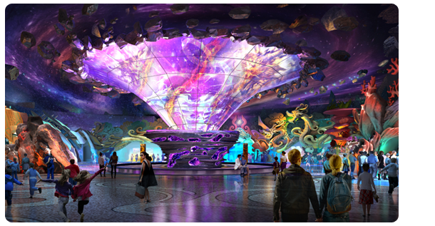 華昌龍之谷奇幻新大陸分龍谷小鎮(zhèn)、奇幻未來、雨林秘境、三個主要場館,以及溶洞館、珍寶館、龍藏山谷。