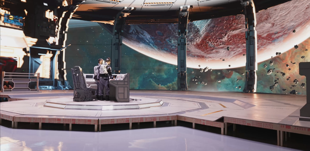 相較于傳統(tǒng)“綠幕”拍攝,基于LED屏的虛擬拍攝能大幅降低影視制作的資金與時間成本。一方面,依托LED屏,拍攝團隊可以不使用任何外景,而是把沙漠、森林、星空等場景直接投射到屏幕上,將虛擬影像與真實表演融合到一起,做到所拍即所得。