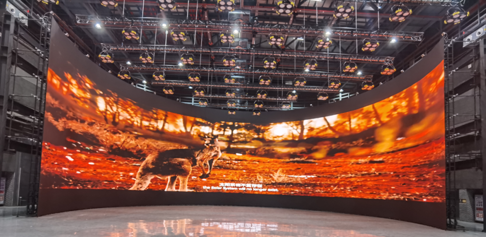 項目簡介:無錫國家數(shù)字電影產(chǎn)業(yè)園的5G智慧虛擬攝制棚內(nèi),這個占地3000平方米的超大攝影棚,也是目前國內(nèi)最大的電影級5G智慧虛擬攝制棚。站在弧形巨幕下,沉浸感撲面而來。該屏幕由1760臺點間距為2.84毫米的LED箱體和播控系統(tǒng)組成,整屏分辨率達15K,屏幕刷新率高達7680Hz。