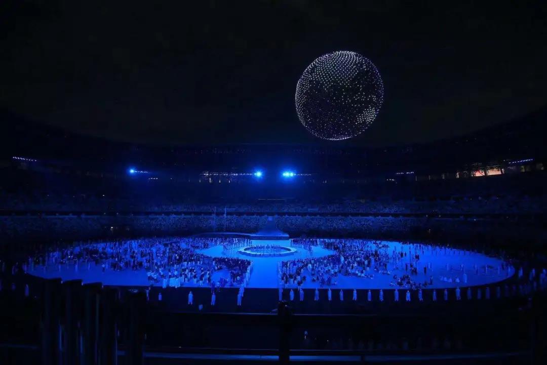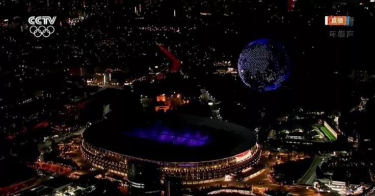1824架無人機在東京上空組成了東京奧運會會徽,與場地中央的會徽遙相呼應,科技感十足。