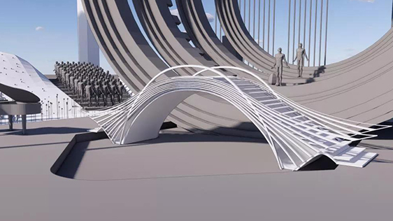 橋尾設(shè)計(jì)成展翅高飛的樣子,預(yù)示著更美好的未來(lái),橋身柔和彎曲,倒映在水中合并成一個(gè)圓,象征著事成圓滿之意。灣升明月,在這人間銀河,架起一座橋,愿伴飛橋跨晴空,奮擊揚(yáng)帆創(chuàng)新篇。