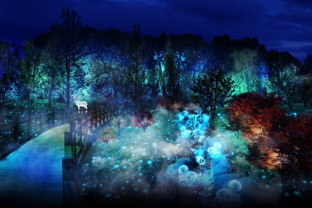將光影藝術(shù)與自然景觀融為一體,結(jié)合國際前沿科技手段和特效裝置,通過沉浸的光影體驗(yàn)、震撼的視覺效果創(chuàng)造一種獨(dú)特的沉浸式體驗(yàn)感。