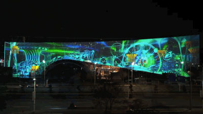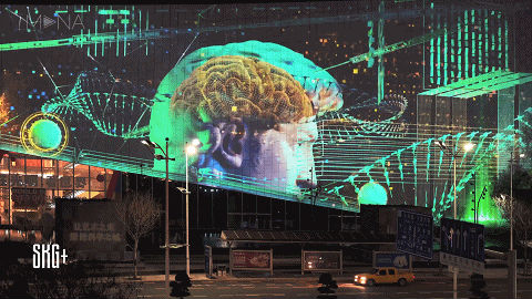 幻鯊文化SKG+用抽象藝術(shù)的風(fēng)格來描繪一切現(xiàn)實(shí)世界中的自然物質(zhì)和人造文明,從而展開一場關(guān)于人類文明和自然世界的對(duì)話。時(shí)空并行,滄海桑田,光影婆娑,在整部作品中,從生命的角度、人類的角度去構(gòu)建一個(gè)宏大的世界觀和曼妙的場景,在光明藝術(shù)中心這座純潔的建筑上,去描繪想象中的多維世界。