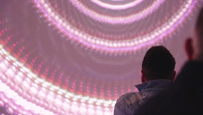 在有限的空間里,Refik Anadol 將一串串冰冷的數(shù)據(jù)變得生動有趣,漫天的絢爛射線與粒子光影環(huán)繞四周,為現(xiàn)場觀眾打開了一個浩渺浪漫的宇宙世界。