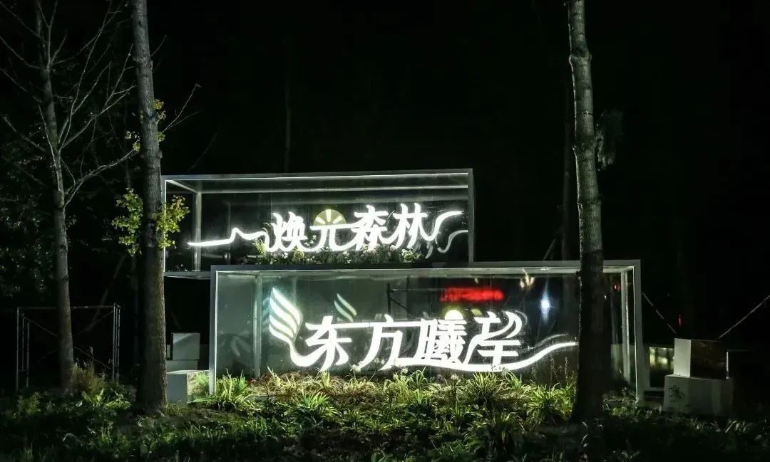 坐落于金海街道、總占地面積超8萬(wàn)平方米,以中央公園現(xiàn)狀為基礎(chǔ)、以《山海經(jīng)》和陰陽(yáng)五行為靈感,歷時(shí)兩年精心打磨、萬(wàn)眾矚目的中國(guó)首個(gè)Lumina 夜游——煥光森林•東方曦望ORIENS LUMINA,在九棵樹(shù)末來(lái)藝術(shù)中心北面落地。
