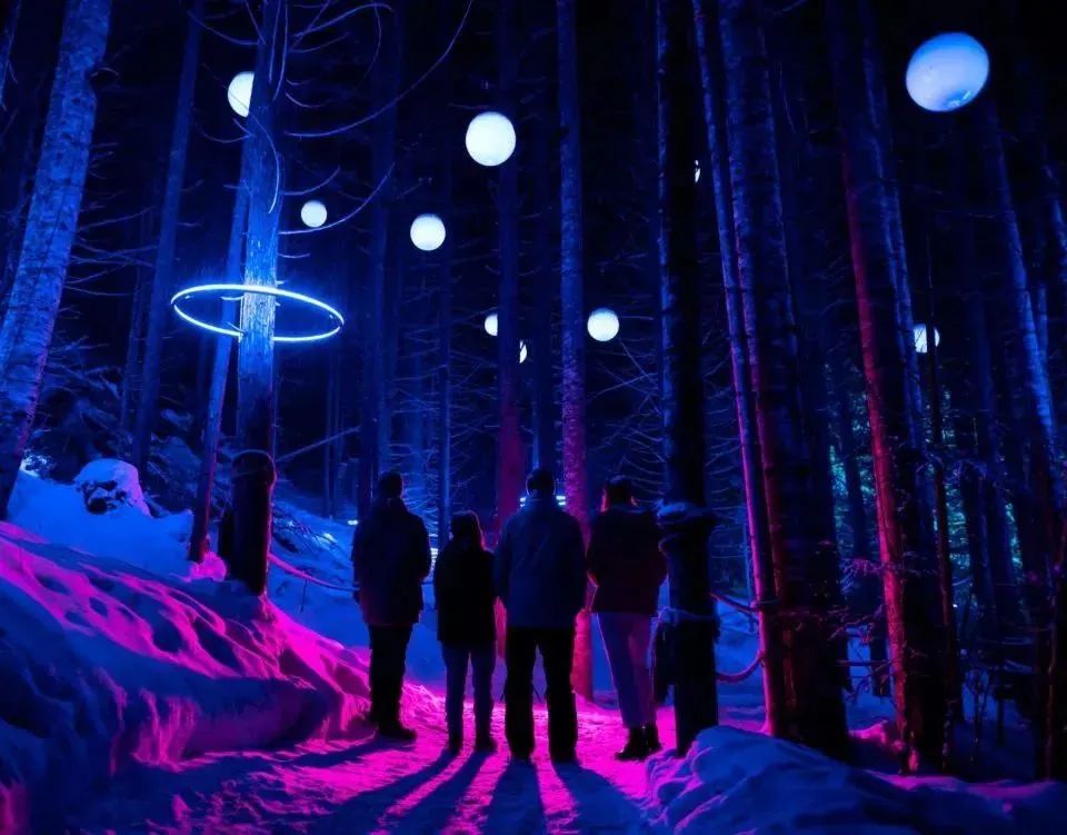 Vallea Lumina用超強(qiáng)的情景內(nèi)容設(shè)計(jì),讓惠斯勒夜晚原本沉寂的森林公共空間釋放出強(qiáng)大的魅力。