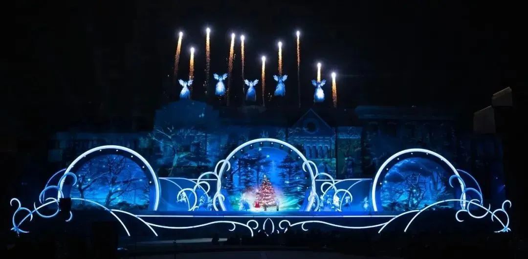 團(tuán)隊(duì)通過設(shè)計(jì)過渡時(shí)刻,來突出故事情節(jié),利用了22分鐘來加深節(jié)目的敘事主題(雪景),以及演出的視覺視角,打造了一個(gè)充滿節(jié)日魔法的豐富世界。