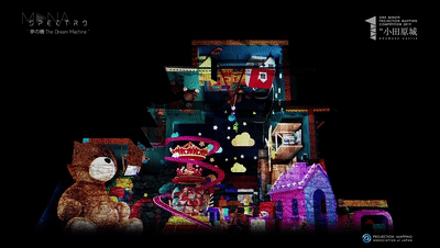 以“夢”為主題,菱視SPECTRO在日本小田原城古建筑物樓體的結(jié)構(gòu)上發(fā)揮想象力,呈現(xiàn)具有視覺沖擊力的畫面。影像中把小田原城想象成一個巨型的販賣機構(gòu)造,創(chuàng)造了出一個神奇的制夢機。