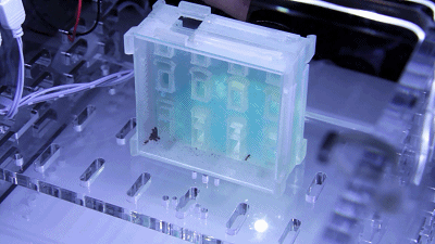 “ArchiBio”是布拉格信號燈節(jié)上的一個作品,使用三維掃描、三維打印等技術(shù)所做,將微觀世界的影像放大投影到建筑之中。