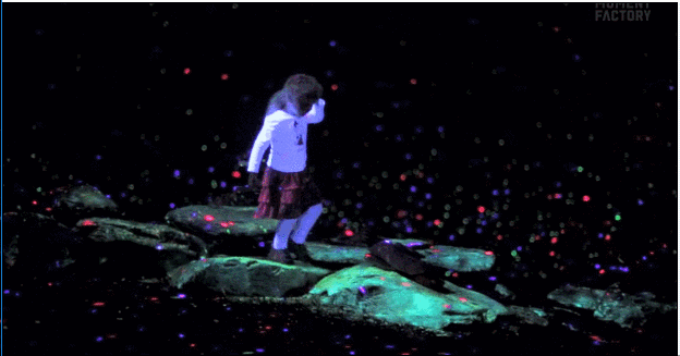 4臺(tái)投影機(jī),1臺(tái)感應(yīng)器,把墻面裝扮成了夢(mèng)幻星空,海面浮現(xiàn)出你可愛(ài)的腳丫。