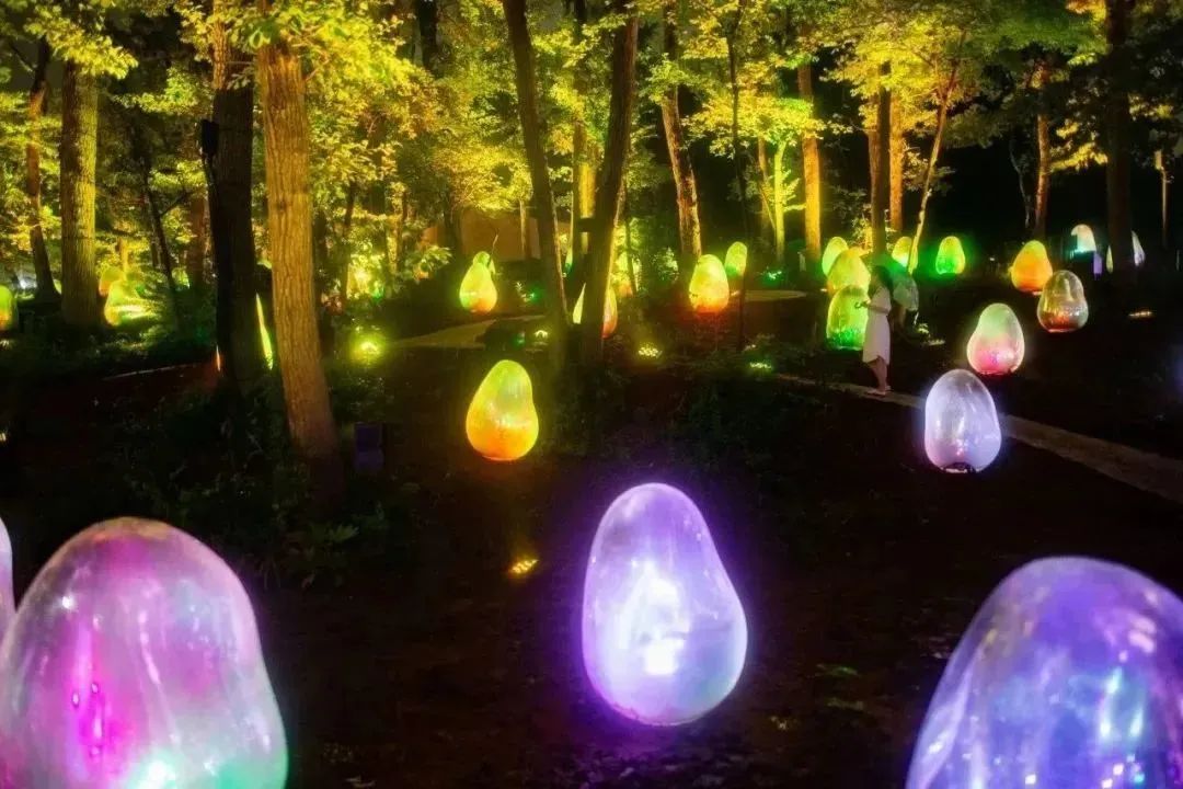 安靜時(shí)刻,57種“液化光色”隨機(jī)變換,散發(fā)耀眼光芒,一呼一吸閃爍著,整個(gè)森林變成了夢幻唯美空間。