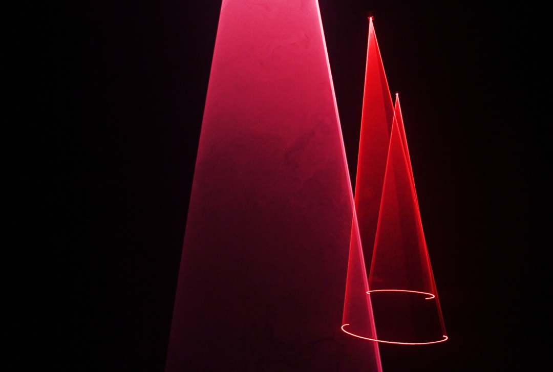 《ESPER》利用激光制造了一些視錯(cuò)覺(jué),讓整個(gè)冥想環(huán)境更迷幻。有機(jī)調(diào)制的光與空間動(dòng)畫聲音同步,為潛意識(shí)創(chuàng)造催眠環(huán)境,使感官平靜,參與者在這件作品里同樣能收獲藝術(shù)療愈的功效。
