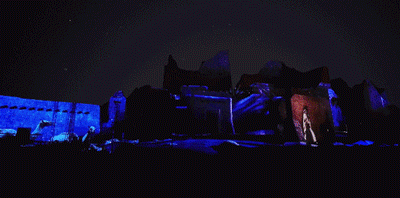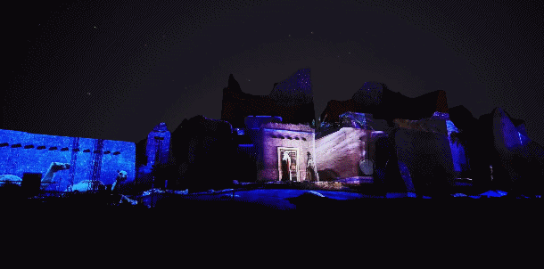 設計團隊以“讓阿圖賴夫廢墟講述自身的歷史故事”為創(chuàng)作概念,以鎖定600平方米的歷史宮殿建筑外墻為“銀幕”,打造7分鐘長的影片。