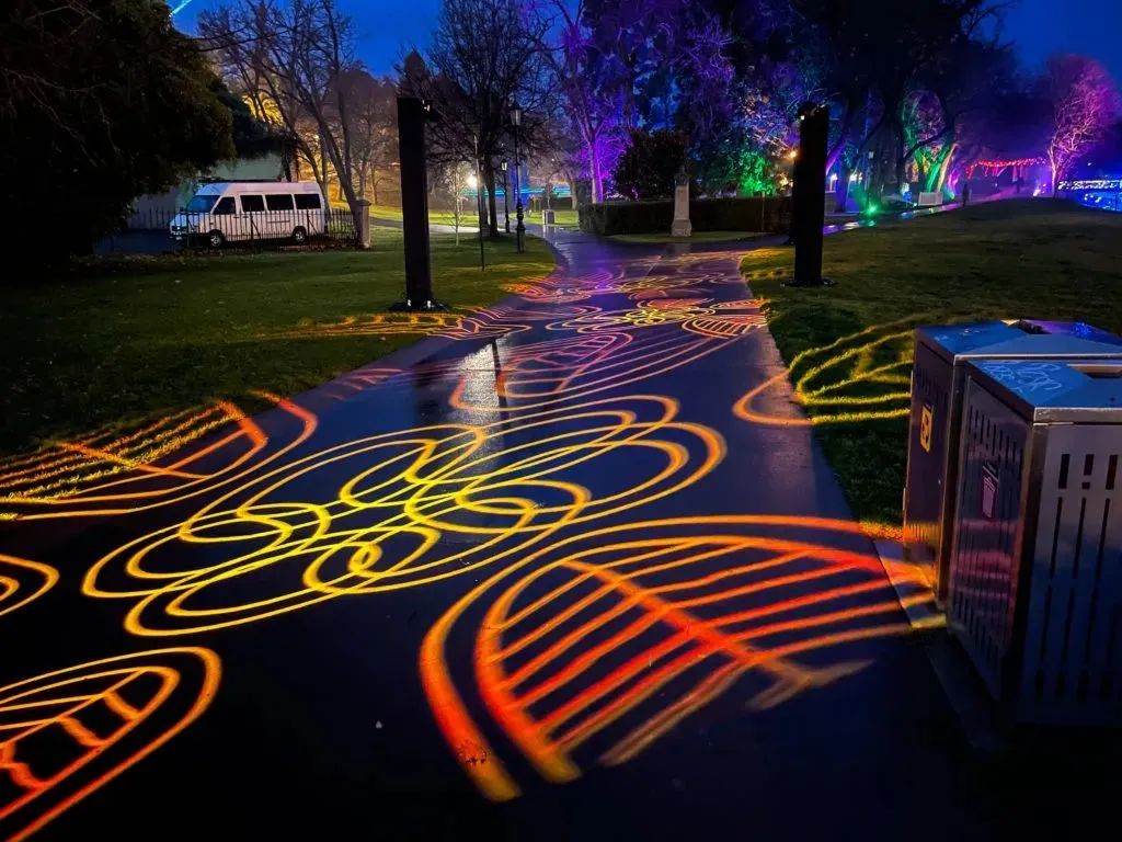 不久前,為了幫助本迪戈尼亞人從疫情和沉郁的冬日中醒來(lái),藝術(shù)家團(tuán)隊(duì)Laservision Mega Media 全新打造了《喚醒本迪戈》大型戶外裝置,讓羅莎琳德公園光芒四射,每天都有奇幻之夜。創(chuàng)作者挖掘公園樹(shù)木和土著故事,讓藝術(shù)裝置反映本迪戈豐富的歷史、悠久的文化。其對(duì)本迪戈人來(lái)說(shuō),既可以觀賞藝術(shù),又可以追溯歷史。Laservision 創(chuàng)意總監(jiān)安吉拉·戴維斯(Angela Davis)表示,“我們真的希望這一切都是獨(dú)一無(wú)二的,每個(gè)元素都有趣,這樣人們就可以被整個(gè)公園吸引住。”