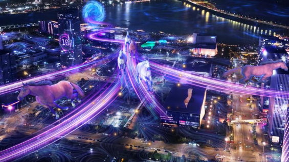 城市元素與“元宇宙”相融合。虛實(shí)交互,光影交錯(cuò);新奇絢麗,如夢(mèng)似幻。