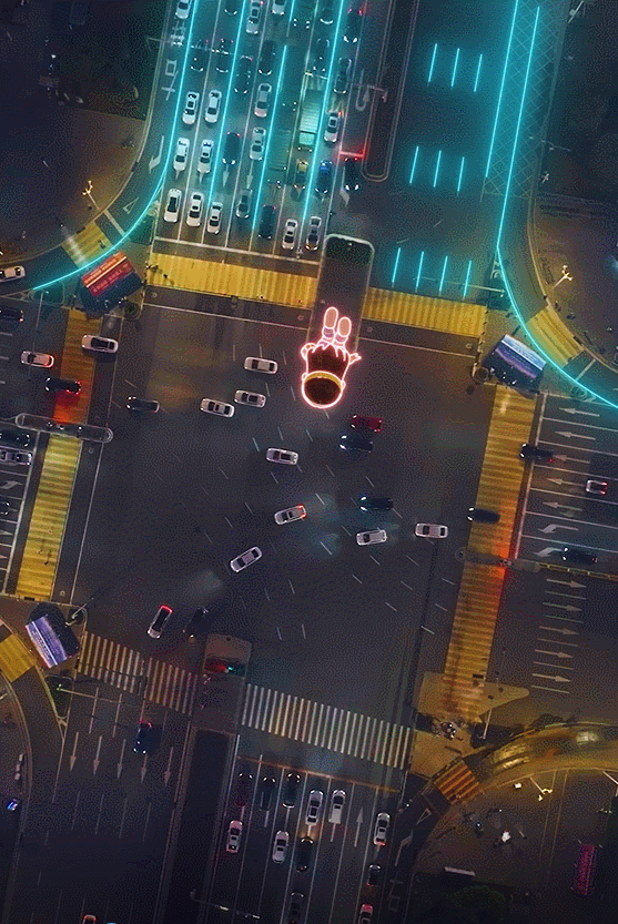 城市上空幻化出宇宙星空,未來城市的景觀隨著時(shí)間數(shù)字的不斷變化快速生長(zhǎng)。航空航天,高鐵、5g、生物工程、工業(yè)建設(shè)等畫面快速閃回,閃現(xiàn)出寶安未來的蓬勃發(fā)展的意象。AR秀以寶安中心區(qū)未來城市主題收尾,巧妙使用元宇宙世界、深港巴士等元素,匯集“聲音”“光學(xué)”“自然”“科技”“交互”融合一體,是一場(chǎng)關(guān)于元宇世界的未來探索。