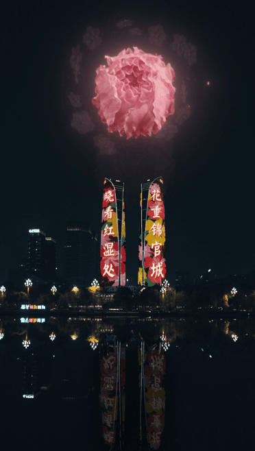 AR光影秀隨著神鳥的盤旋與飛展,芙蓉花盛放,重現(xiàn)了杜甫筆下“花重錦官城”勝景,滿盈人間煙火,帶你細(xì)品安逸成都。