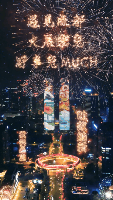 科學(xué)與藝術(shù)的想象,帶來不一樣的新年祝福。當(dāng)城市的夜空被點(diǎn)亮,東莞夜幕成為具象的喜慶舞臺(tái)。