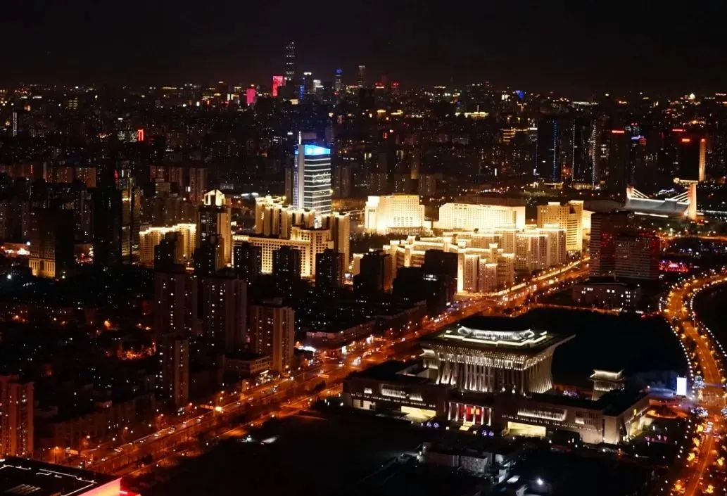 從奧林匹克塔俯瞰京城,城市燈火闌珊,鳥巢、水立方等夜景盡收眼底。