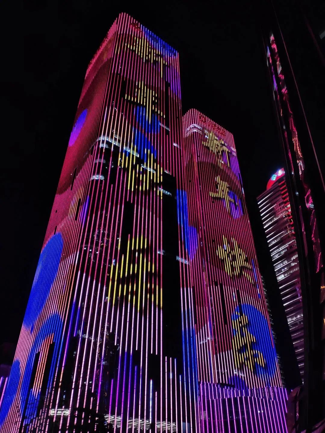 鵬城夜幕降臨,一場(chǎng)“東風(fēng)夜放花千樹”的視覺盛宴將寶安中心區(qū)的現(xiàn)代建筑藝術(shù)品和大型城市綜合體,呈現(xiàn)在市民面前。