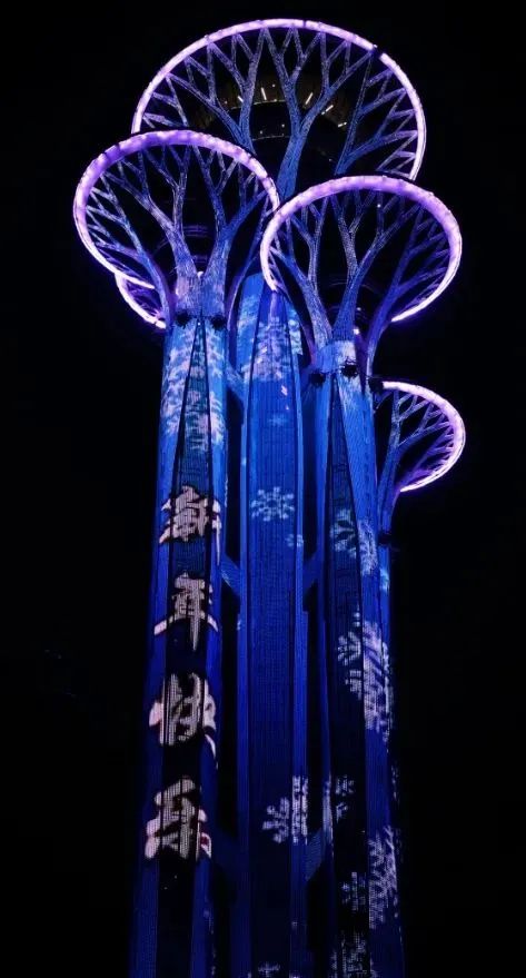 在北京中軸線上,象征著“生命之樹”的奧林匹克塔煥發(fā)著新的光彩,用流光溢彩的倒計(jì)時(shí)光影秀,迎接新一年的到來。濃濃的喜慶節(jié)日氛圍,冬日的雪花在塔身靜靜飄落,跟隨光影秀呈現(xiàn)出“新年快樂”內(nèi)容。