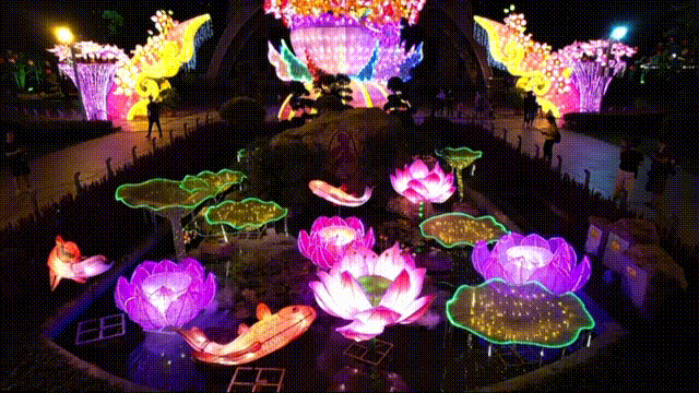 此外在廣州文化公園還有元宵燈會作為壓軸重頭戲,20組主題花燈融入花會造景,春花燈彩共生輝,營造出火樹銀花、流光溢彩的效果。