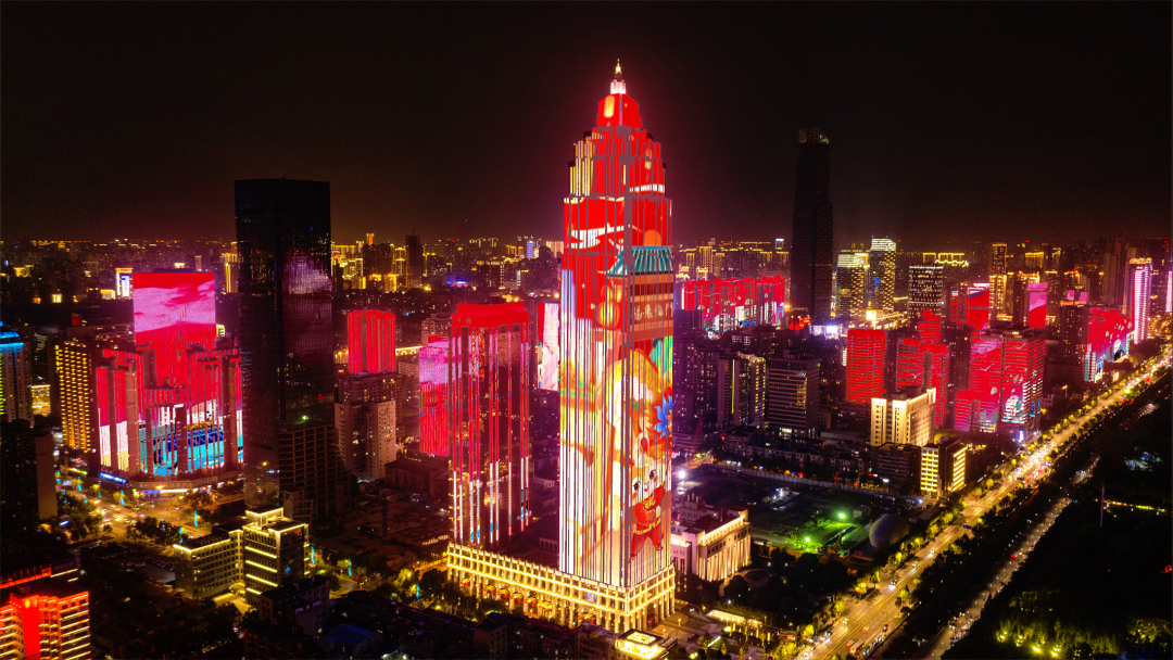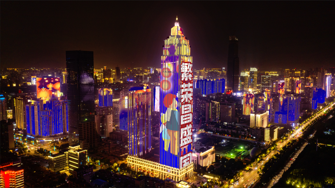 燈光秀運(yùn)用瑞兔、祥龍、湯圓等靈動活潑的動畫元素,結(jié)合五顏六色的光束,演繹中國傳統(tǒng)文化與習(xí)俗,在慶賀喜樂元宵的同時,致敬仍在堅(jiān)守追夢的奮斗者,歌頌祖國錦繡山河,在光影流動中展現(xiàn)出一幅華燈璀璨、福星高照的美麗畫卷,譜寫新時代華章。