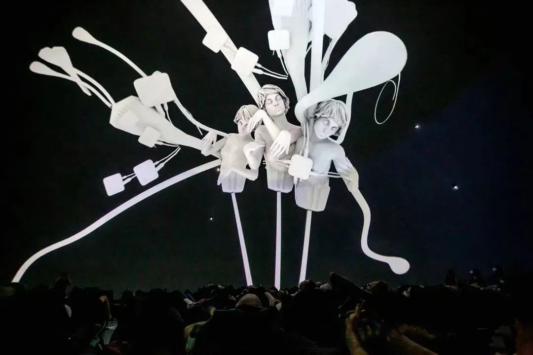 “異世界”是一個(gè)沉浸式的穹頂視聽演出項(xiàng)目,通過數(shù)字影像營造了一個(gè)機(jī)械和生物結(jié)合的花園。主題是人類與重新發(fā)現(xiàn)的自然狀態(tài)之間的潛在共生關(guān)系。它探索了我們?nèi)祟惾绾闻c突變的自然、植物所形成的環(huán)境或非人類生命產(chǎn)生共鳴的問題。該作品旨在尋找非人類和超自然的生物敏感性,解決氣候變化和物種滅絕的關(guān)鍵問題,同時(shí)為觀眾提供身臨其境的沉浸體驗(yàn)。