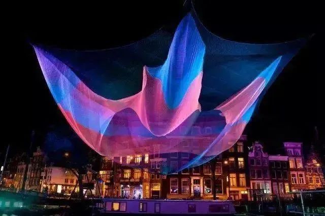 Janet Echelman創(chuàng)作建筑規(guī)模的實驗性雕塑,她擅長挖掘柔軟材料所蘊含的強大而有機的力量,并利用風、光線等自然元素增加作品的表現(xiàn)維度。她的作品常建立在嚴謹?shù)恼{查數(shù)據(jù)基礎上,并將其予以視覺化呈現(xiàn),通過變化豐富的有機形態(tài)呈現(xiàn)出地球的脈動,激發(fā)人們對自然的思考。