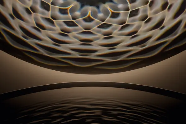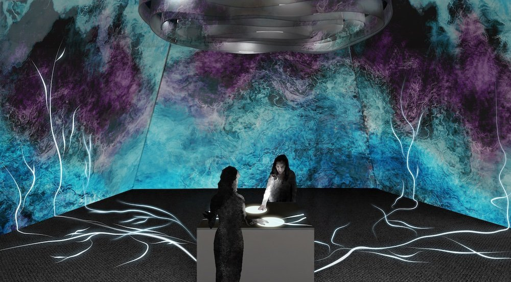 Google與設(shè)計(jì)團(tuán)隊(duì)藝術(shù)家Lachlan Turczan合作共同創(chuàng)作了Shaped by Water,這是一個(gè)探索水作為設(shè)計(jì)靈感來(lái)源的展覽。一系列裝置將水與光和聲音混合在一起。鏡面雕塑中的水池隨著附近游客的移動(dòng)而蕩漾開(kāi)來(lái)。抬頭凝視天花板,仿佛置身于天文館,欣賞由液體舞蹈和旋轉(zhuǎn)中的音樂(lè)振動(dòng)所產(chǎn)生的波浪光圖案的反射。