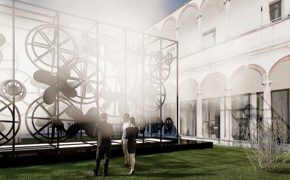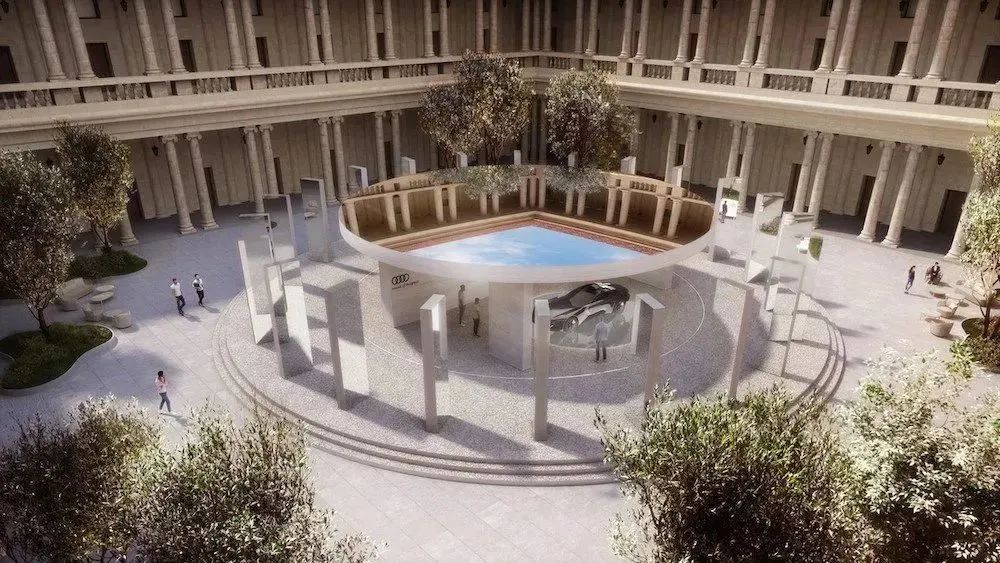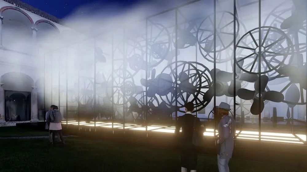 2023 年米蘭設(shè)計(jì)周期間,馬巖松 MAD 的裝置作品“動(dòng)量”在米蘭大學(xué) Cortile d’Onore 的中央庭院展出。