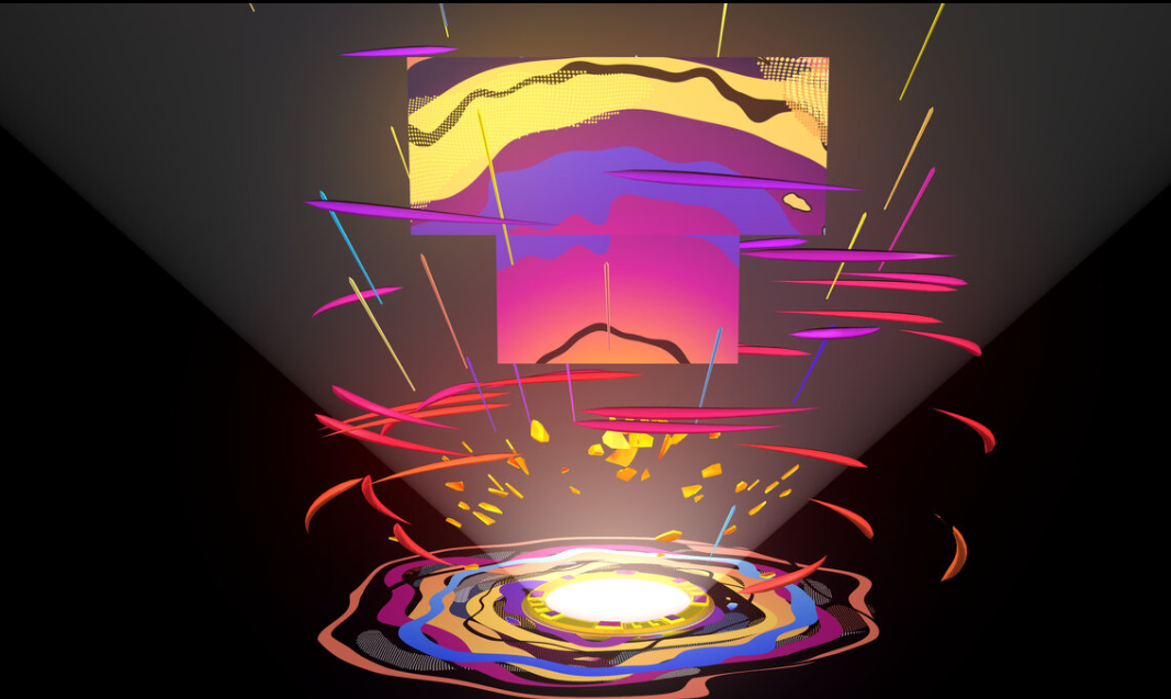 一個(gè)運(yùn)動的粒子,形成了兩個(gè)3D外觀之間的過渡。團(tuán)隊(duì)把相機(jī)固定在三腳架上,并平坦的渲染地板表面。其中,地板以Embergen中實(shí)驗(yàn)粒子特性創(chuàng)建,以序列的形式呈現(xiàn)。