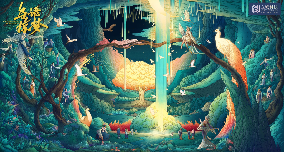 項(xiàng)目通過全新的數(shù)字新媒體與交互藝術(shù)裝置技術(shù),融入北戴河·鴿子窩公園的鳥主題及文化元素;結(jié)合光影、特效、交互及聲光電影音等多種手段設(shè)計(jì),在花園之中營(yíng)造光影變幻的神奇動(dòng)物夜。