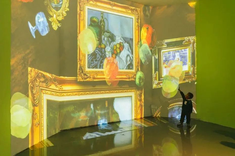 這種蘋果的震撼力不僅在塞尚的油畫作品中得到了展現(xiàn),而且也被具體化在這次沉浸式展覽中。展廳內(nèi)設(shè)置了特別的感應(yīng)互動藝術(shù)裝置,讓觀眾在欣賞塞尚筆下的立體“蘋果”時,可以充分地運(yùn)用肢體動作與之互動,獲得全新的體驗。
