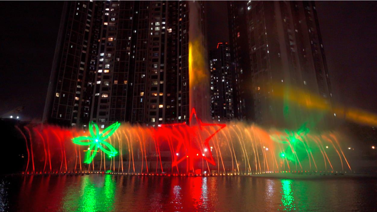 幸福之光人民大舞臺之“幸福之光·紅色傳承”慶祝建黨100周年,我司以水舞秀以光為筆,以水作袖,以文化為魂,分為頌芳華、正輝煌、向未來三個篇章,時長9分鐘,生動的詮釋了偉大祖國的過去、現(xiàn)在和未來。水舞秀噴泉設(shè)計共有7種水型和1個高噴造型,寓意中國共產(chǎn)黨的生日7月1日。7種水型設(shè)計分別寓意為:勇立潮頭、一往無前、凝心聚力、生生不息、展翅飛翔、龍飛鳳舞、和諧美滿,生動體現(xiàn)了文沖百姓“文武兼?zhèn)洹⒅怯码p全、沖鋒陷陣、爭創(chuàng)一流”的奮斗精神和活力風采。